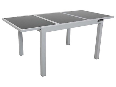 Grande Table De Jardin Extensible Grise Et Plateau En Verre Opaque